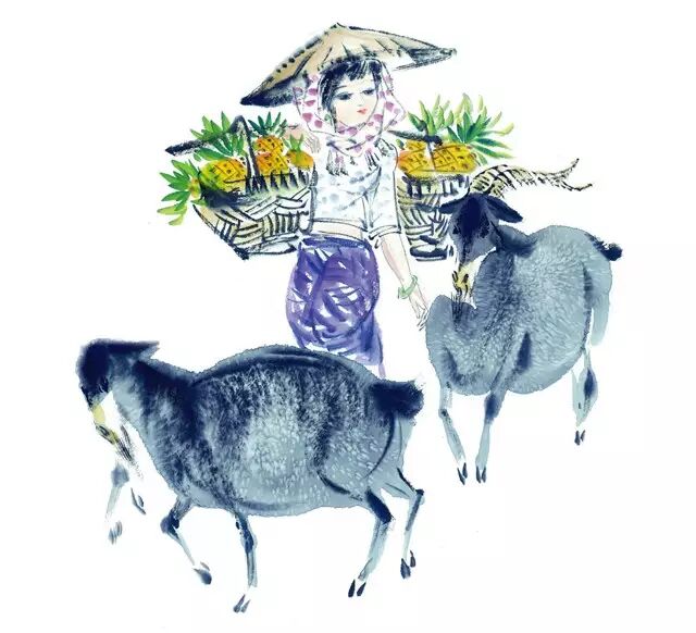 一個少婦進城賣驢和山羊。山羊的脖子上系著一個小鈴鐺。三個小偷看見了,一個小偷說:“我去偷羊,叫少婦發(fā)現(xiàn)不了。”另一個小偷說:“我要從少婦手里把驢偷走。”第三個小偷說:“這都不難,我能把少婦身上的衣服全部偷來。”