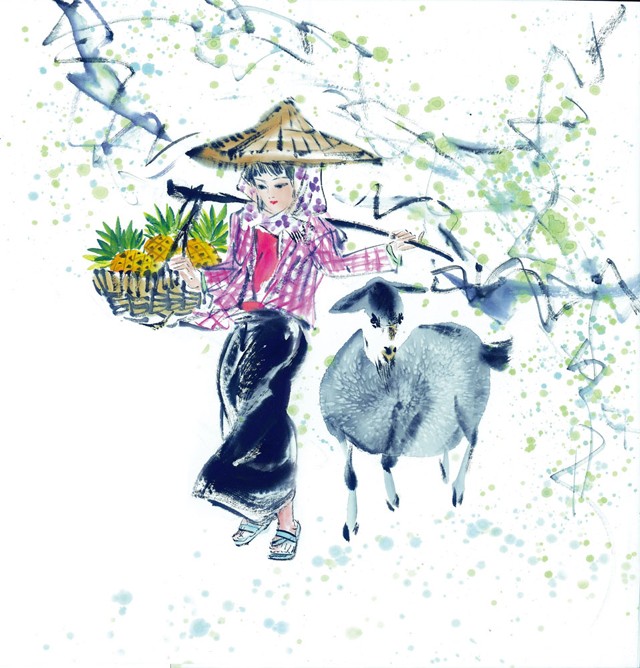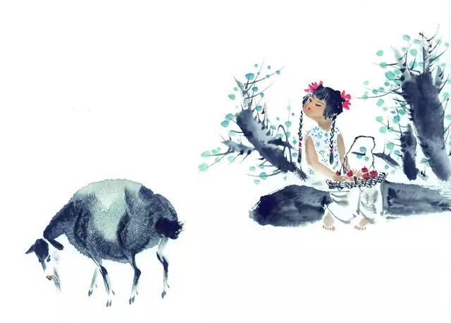 少婦從樹林里回來一看,驢子也不見了,就在路上一邊走一邊哭。走著走著,她看見池塘邊坐著一個人,也在哭。少婦問他發(fā)生了什么事。
